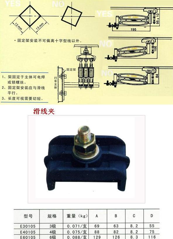 隨著FMS化、無人化工廠的發(fā)展,設(shè)備的自動化程度越來越高,因此滑線的小型化、安裝方便性、高速平穩(wěn)性顯得尤為重要。為滿足市場發(fā)展的需要,本公司成功開發(fā)了DHB型柔性滑線系統(tǒng)。本系統(tǒng)具有運行平穩(wěn)、速度快,噪音低,供電方式隨意性高等特點。可按不同的工作條件分為張緊型和非張緊型兩種安裝形式。